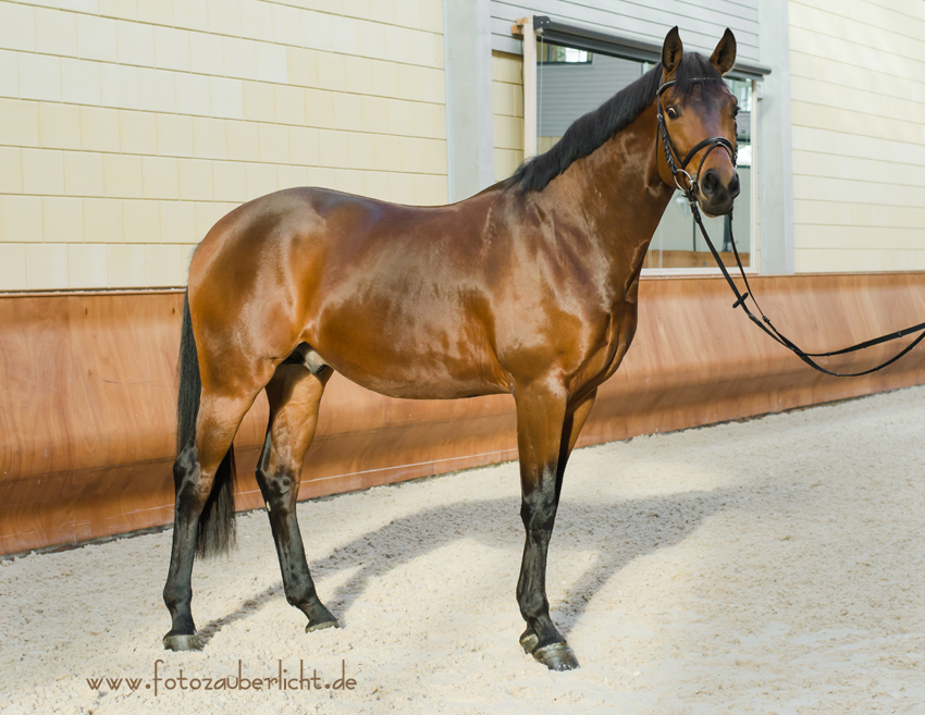 Obgleich er nach seiner Verletzungspause noch leichte Konditionsrückstände hatte, überzeugte er auf ganzer Linie und schloss mit einer dressurbetonten Endnote von 8,66 hervorragend ab. Sein Zuchtwert wurde mit 143 angegeben.
